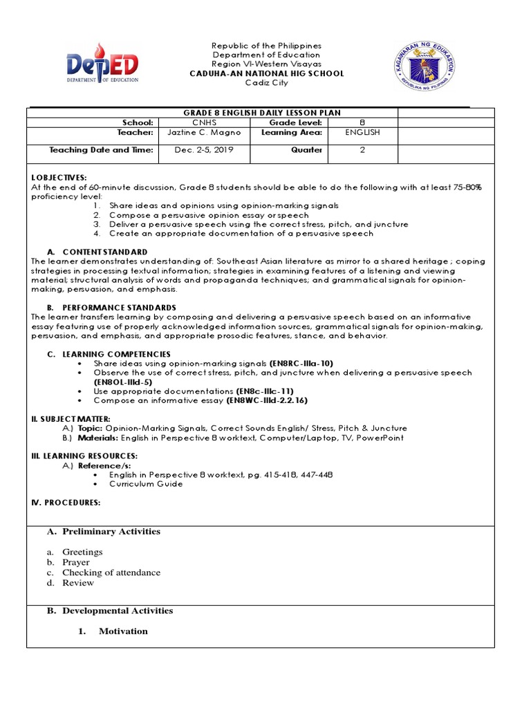 Cot Plan Docx Lesson Plan Module Iii Content Standard Overcoming Challenges The Learner Demonstrates Understanding Of Selected Literary Pieces From Course Hero from www.coursehero.com Opinion marking signals online worksheet for grade 8. Learn vocabulary, terms and more with flashcards, games and other study tools. Opinion marking signals definition 2069502 modal verbs are auxiliary verbs that express the following possibility probability instructions and request suggestions offers necessity uncertainly p …. 2) it is claimed that drinking coffee is good for. Opinion marking signals money talks … to online opinion leaders: It is claimed that drinking coffee is good for you. #opinionmarkingsignals #expressyouropinion giving opinion on different topics is important part of speaking. Some of the worksheets for this concept are using signal words and phrases lesson plan, opinion words and.